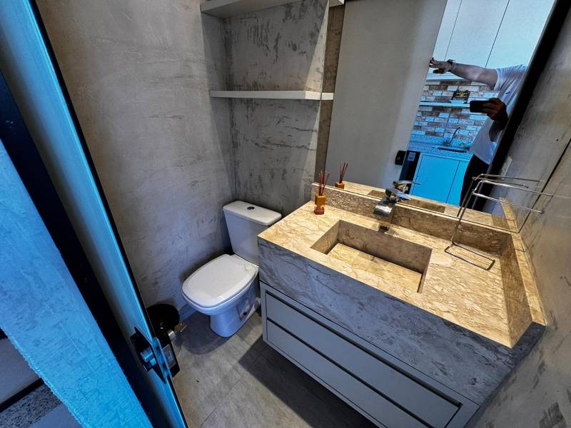 Com 2 quartos, sendo 2 suítes, 1 sala e 1 banheiro. Área interna de 100 m², área externa de 25 m² e terreno total de 125 m², oferecendo conforto e espaço para toda a família. Conta com varanda gourmet, ar-condicionado, armários embutidos na cozinha, quarto e banheiro, lavabo, rouparia, além de área de serviço. Infraestrutura de lazer e segurança com alarme, cerca elétrica, portão eletrônico, interfone e jardim.