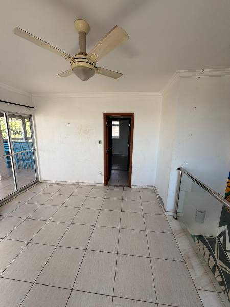 O segundo pavimento é acessado por escada em mármore, com guarda-corpo em vidro temperado e inox, trazendo elegância e segurança. Neste nível, há uma sala de TV ampla, com porta de acesso à área externa, além de 1 quarto com suíte. O grande destaque fica por conta da área gourmet, equipada com armários e churrasqueira, perfeita para momentos de lazer e convivência.