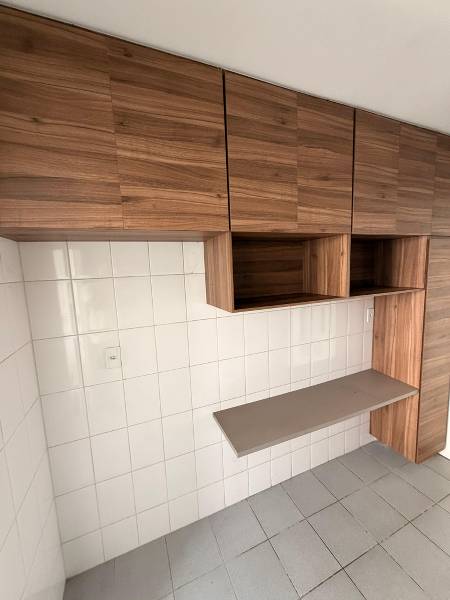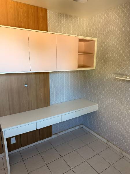 No primeiro pavimento, o imóvel conta com sala ampla, com piso em cerâmica e armário, além de 3 quartos com armários planejados, sendo uma suíte e dois dormitórios com ar-condicionado. O banheiro da suíte e o banheiro social possuem armários, box em vidro temperado e acabamento em cerâmica. A cozinha é bem planejada, com armários, bancada em granito e acesso à área de serviço, que também dispõe de armários.